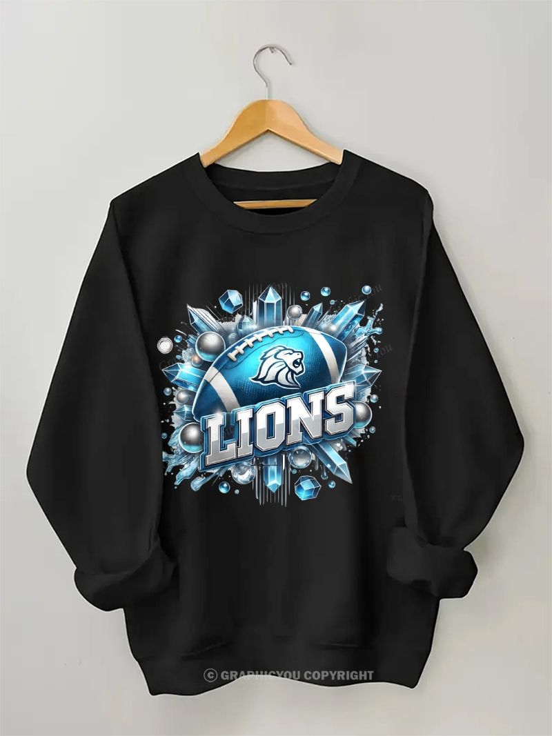 Lions Inspired Football Graphic Cotton Sweatshirt