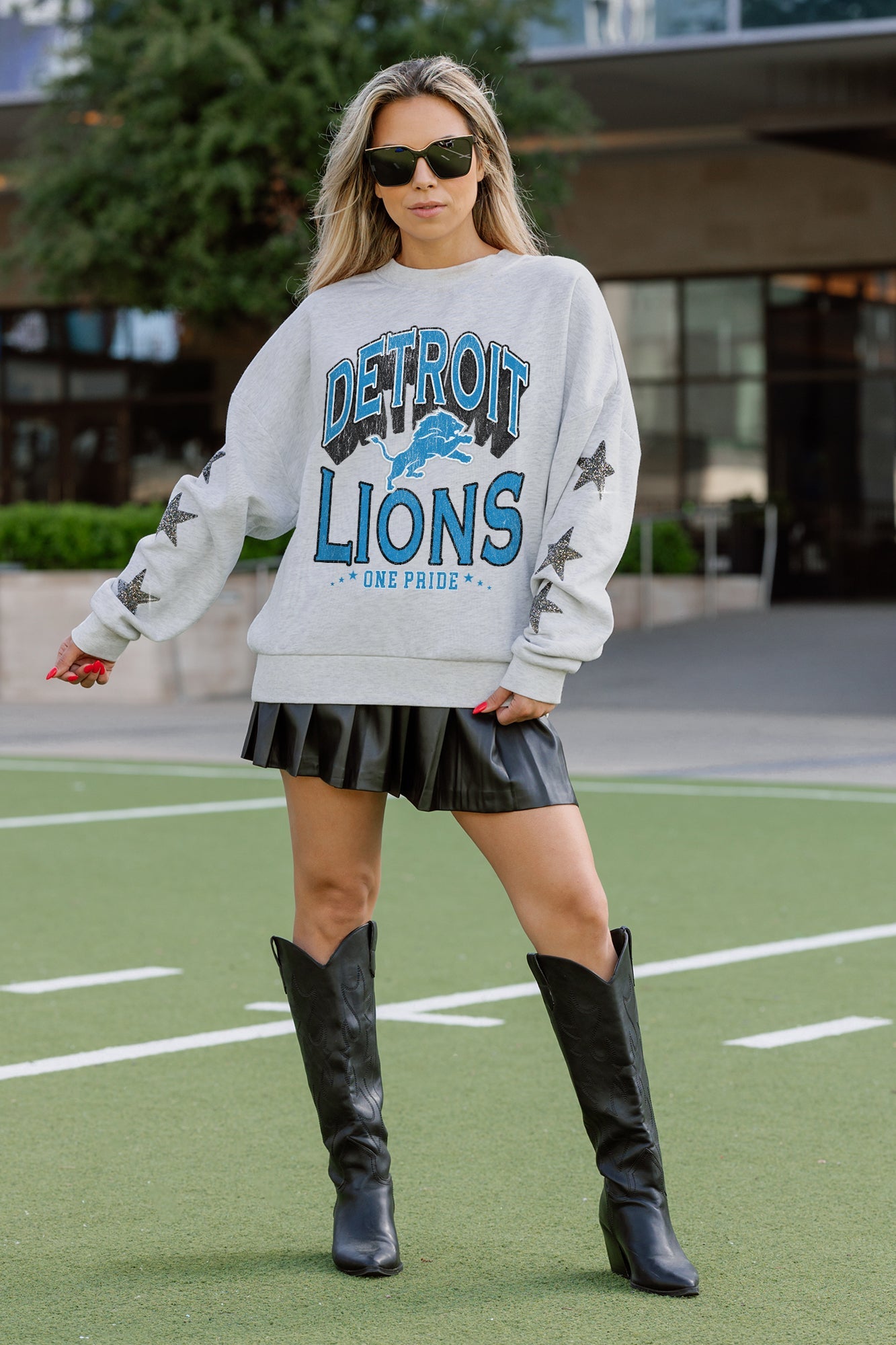 DETROIT LIONS RESILIENCE STAR EMBELLISHED CREW SWEATSHIRT