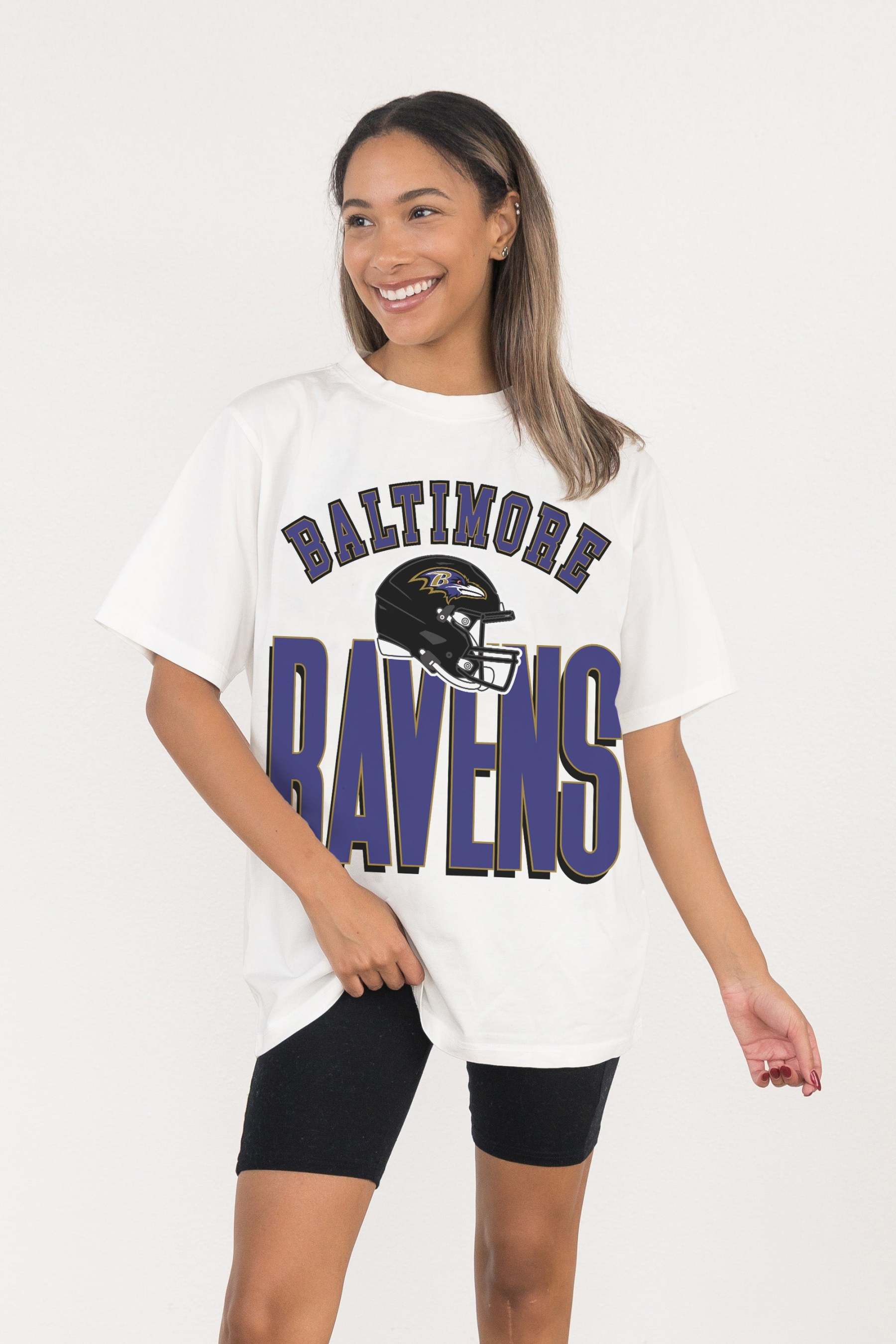 Gameday just got better with our Baltimore Ravens oversized short sleeve crewneck tee. Crafted from super soft fabric, it's destined to become your new fan favorite!