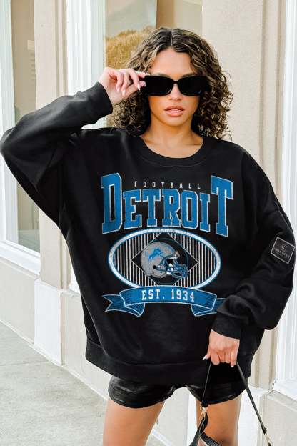DETROIT LIONS BOLD CHEERS BLACK LABEL PREMIUM FLEECE CREW SWEATSHIRT