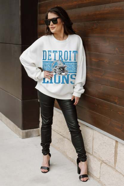 Stand out from the crowd in our Detroit Lions premium fleece long sleeve sweatshirt. Boasting an oversized fit, crewneck and ribbed knit neckline, wrists, and waistband, it effortlessly blends comfort with fashion. Show your support for your favorite school or team in this irresistibly soft sweatshirt.