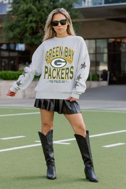 GREEN BAY PACKERS RESILIENCE STAR EMBELLISHED CREW SWEATSHIRT