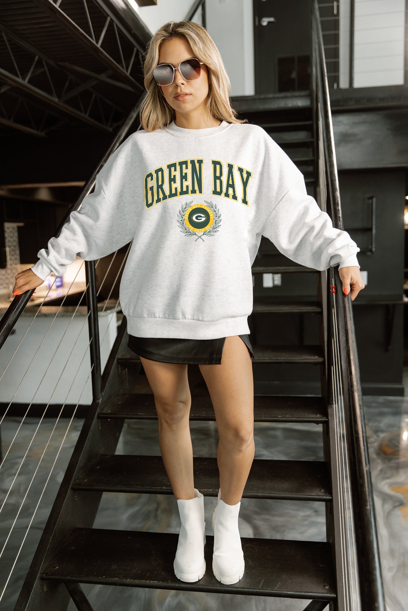 Stand out from the crowd in our Green Bay Packers premium fleece long sleeve sweatshirt. Boasting an oversized fit, crewneck and ribbed knit neckline, wrists, and waistband, it effortlessly blends comfort with fashion. Show your support for your favorite school or team in this irresistibly soft sweatshirt.