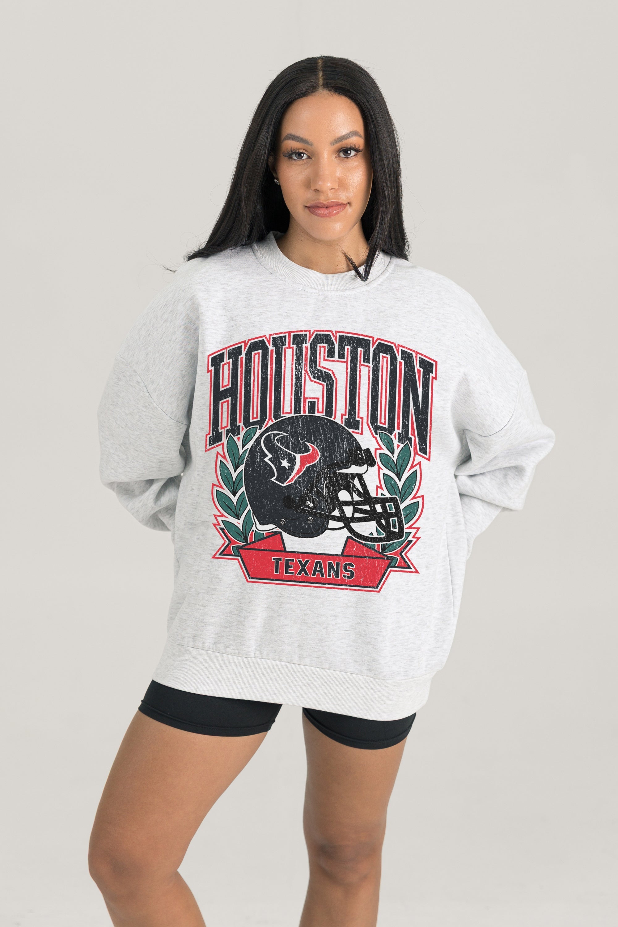Stand out from the crowd in our Houston Texans premium fleece long sleeve sweatshirt. Boasting an oversized fit, crewneck and ribbed knit neckline, wrists, and waistband, it effortlessly blends comfort with fashion. Show your support for your favorite school or team in this irresistibly soft sweatshirt.