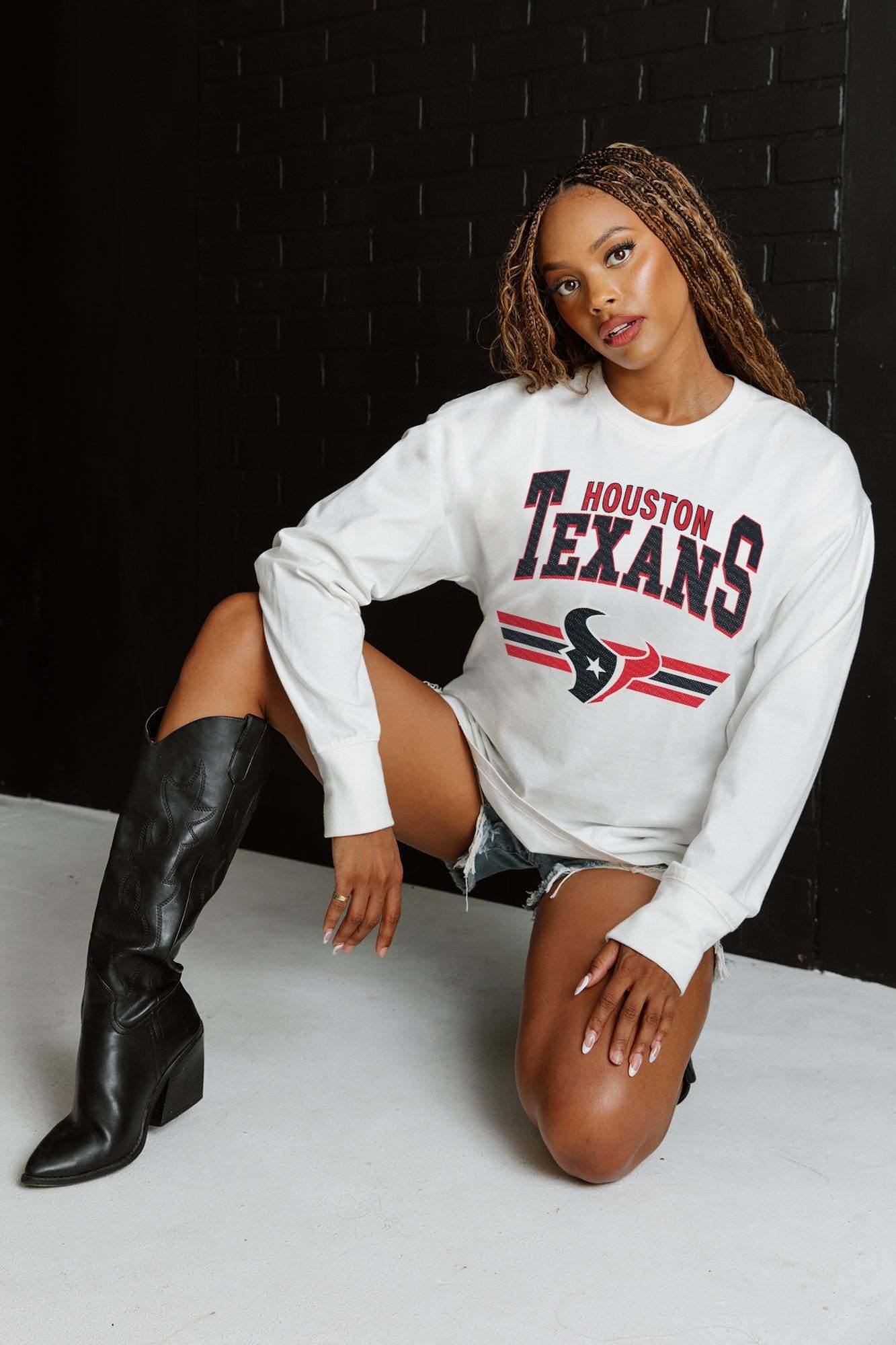Bring the energy of the game to your wardrobe with our Houston Texans oversized long sleeve tee with ribbed neckline and cuffs. Showing off your Houston Texans spirit will be a breeze.