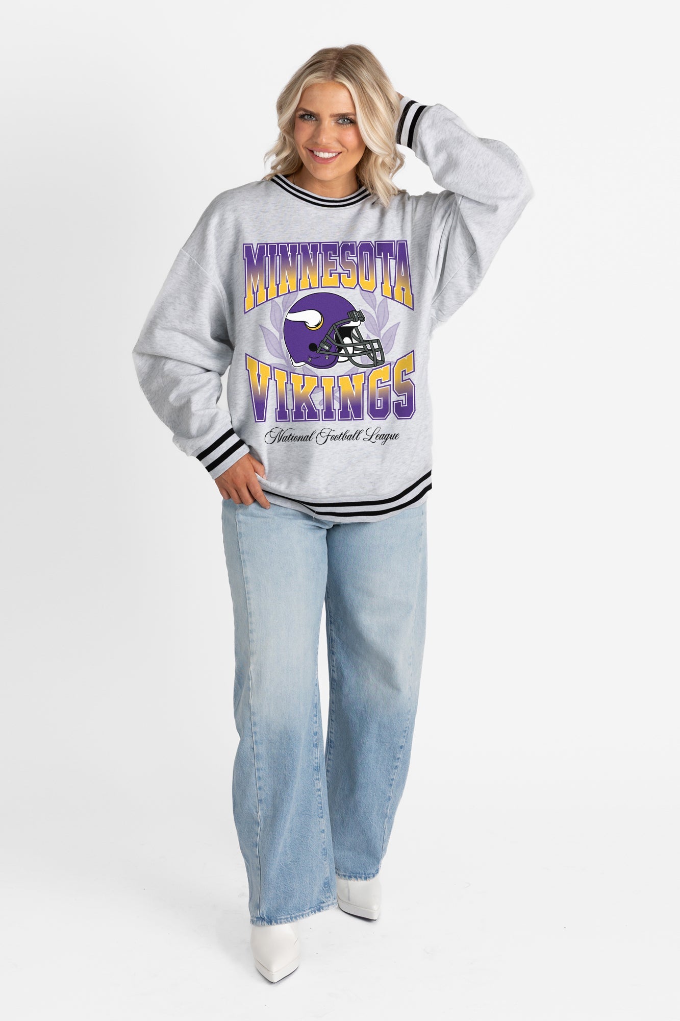 MINNESOTA VIKINGS FADE ROUTE CREW FLEECE RINGER SWEATSHIRT