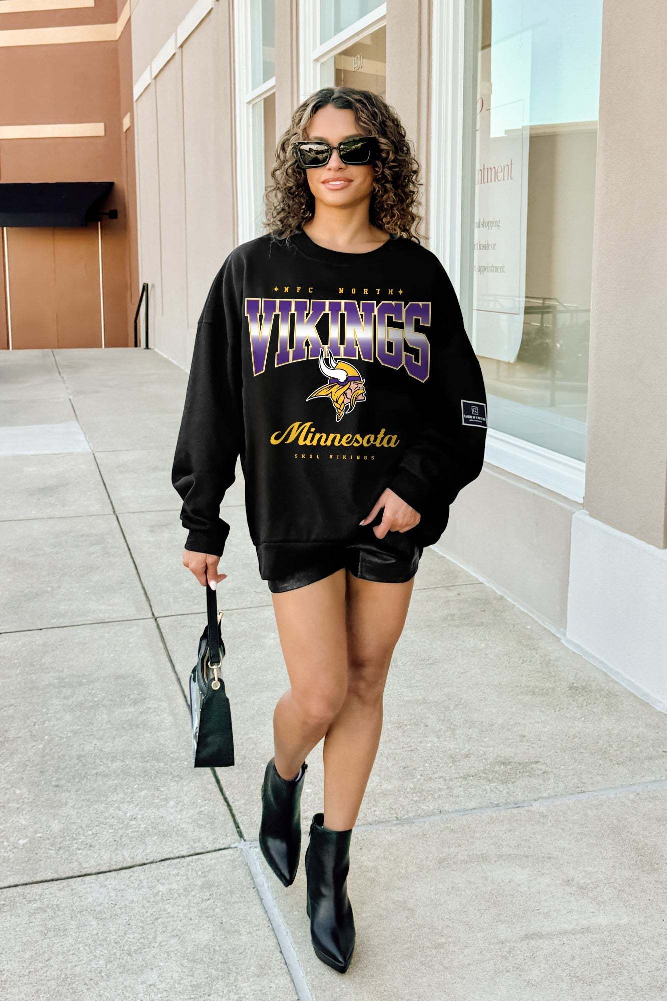 MINNESOTA VIKINGS POWERHOUSE PLAY BLACK LABEL PREMIUM FLEECE CREW SWEATSHIRT