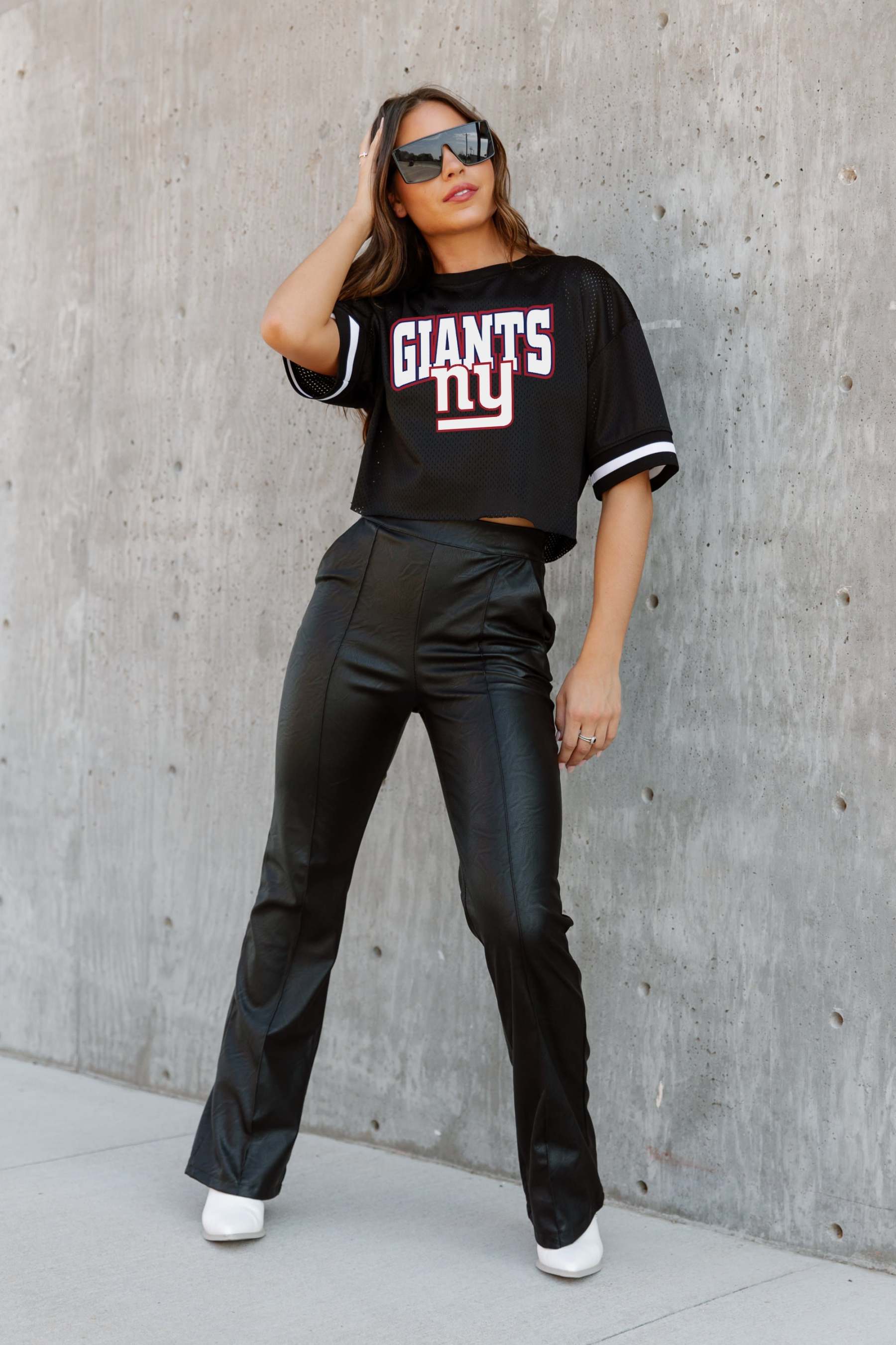 NEW YORK GIANTS Automatic Down Lightweight Striped Sleeve Top