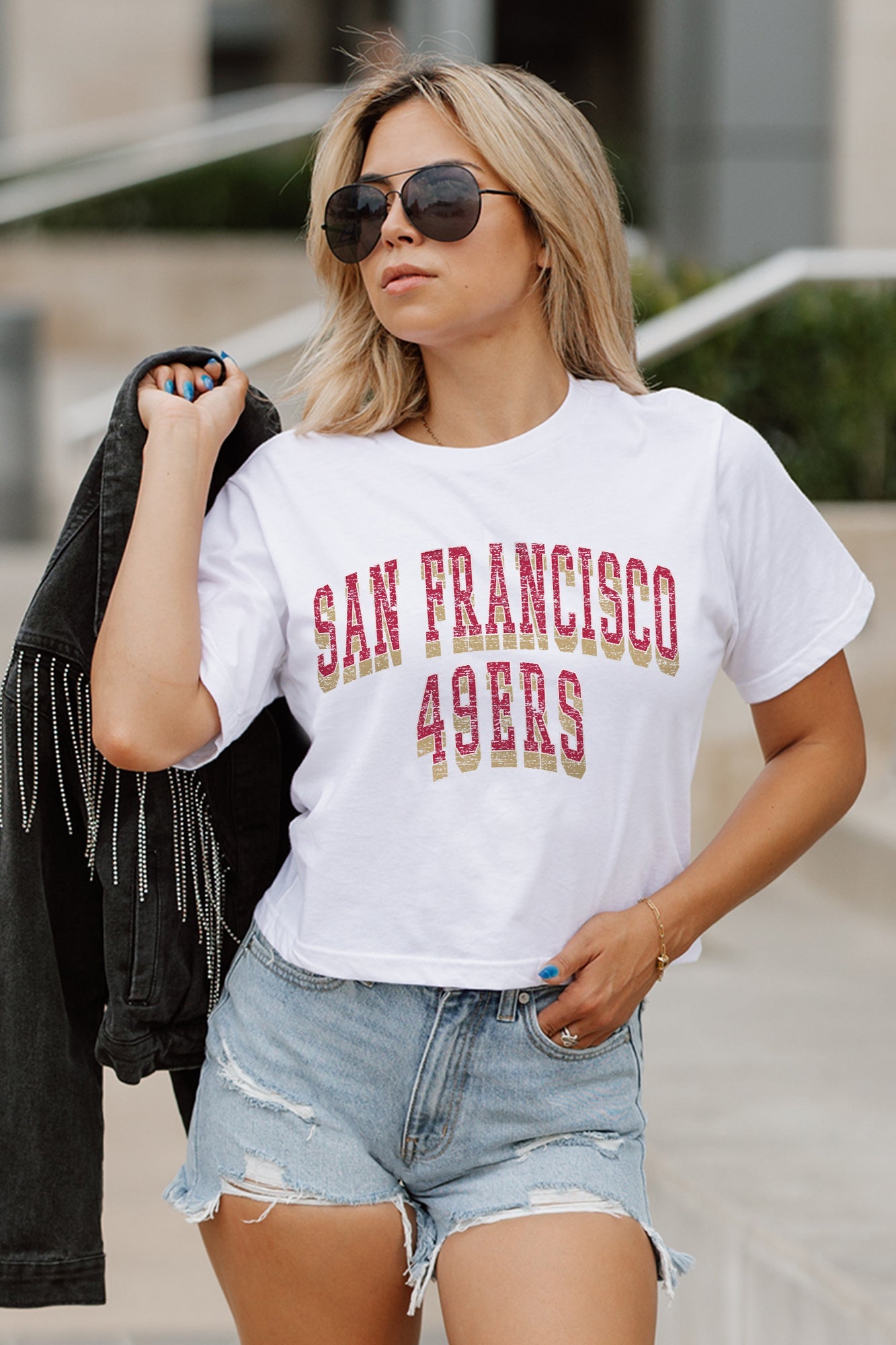 Every day is game day with our San Francisco 49Ers midi-length, boxy fit cropped tee with drop shoulder sleeves. Perfect for game day excitement or casual outings, this versatile tee is a must-have addition to your wardrobe.