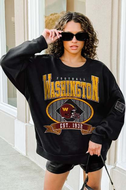 Get ready to cheer on your Washington Commanders with our black label premium fleece drop-shoulder crewneck. Featuring a ribbed knit neckline, cuffs, and waistband, you'll be standing out whether it's game day or every day.