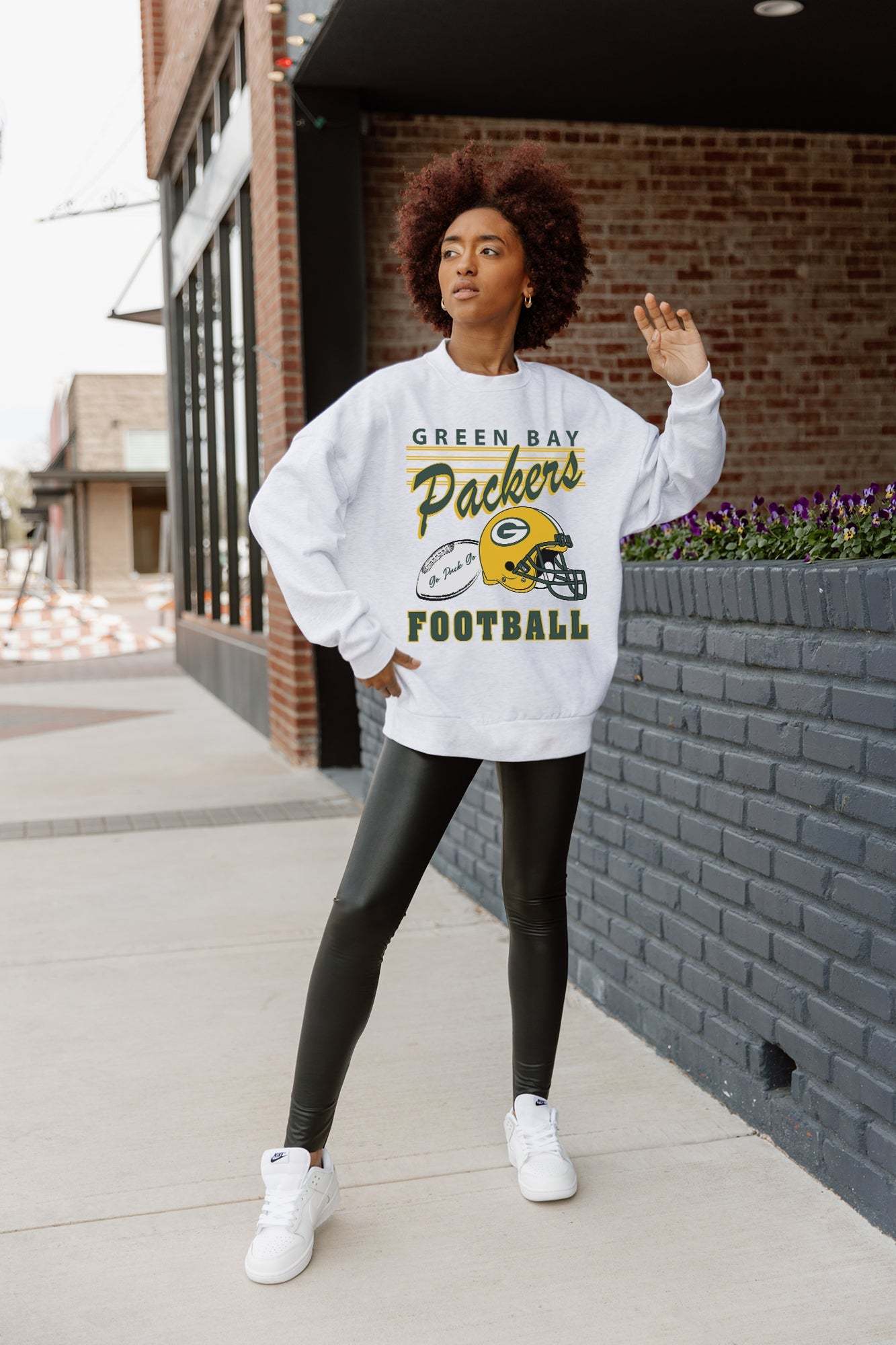 Stand out from the crowd in our Green Bay Packers premium fleece long sleeve sweatshirt. Boasting an oversized fit, crewneck and ribbed knit neckline, wrists, and waistband, it effortlessly blends comfort with fashion. Show your support for your favorite school or team in this irresistibly soft sweatshirt.