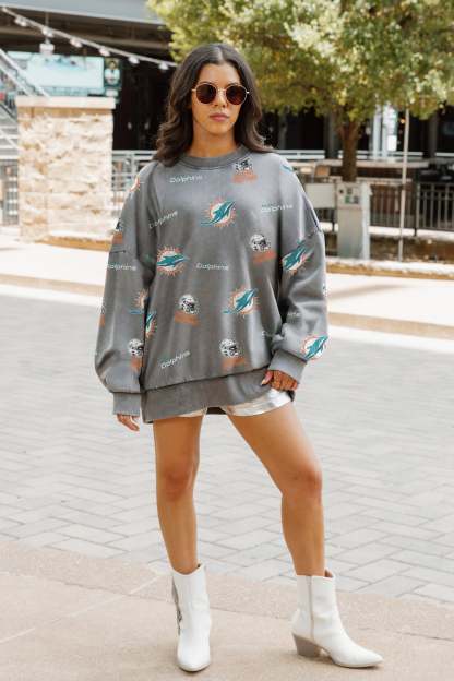 MIAMI DOLPHINS Playback Vintage-Wash Oversized Fleece Crew