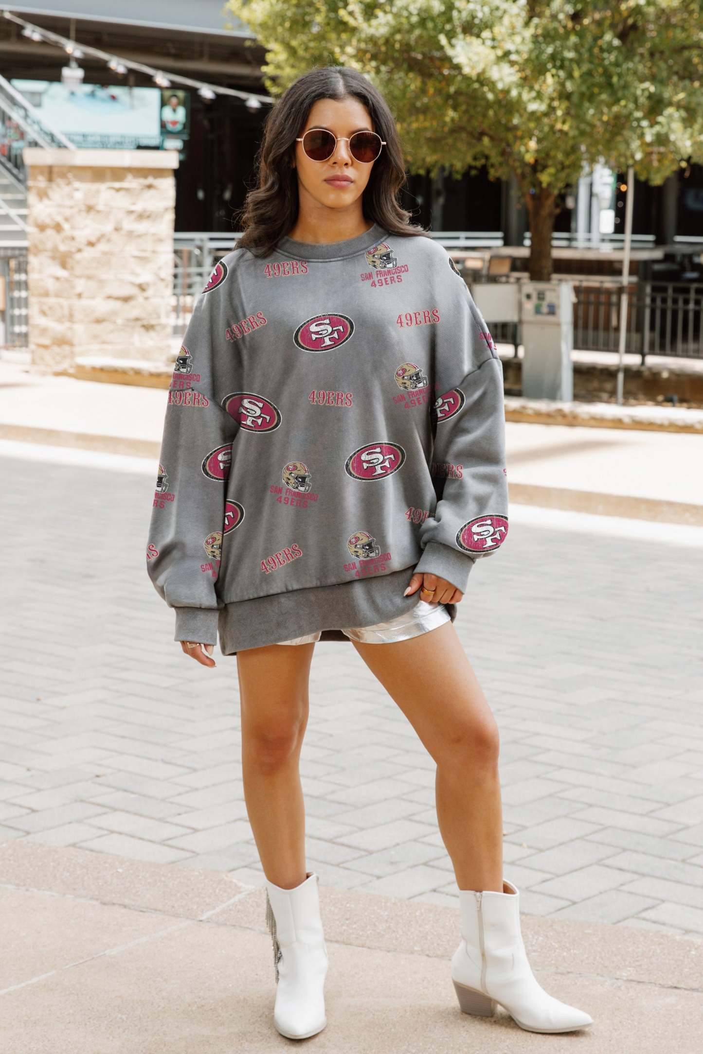 Celebrate your San Francisco 49Ers with unparalleled style in our vintage wash oversized crewneck fleece. Featuring a classic ribbed neckline and cuffs, this fleece ensures that even the most dedicated fan can cheer in absolute comfort.