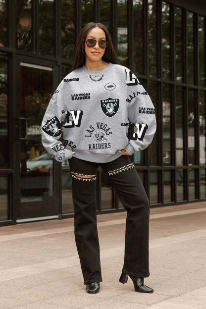 Show off your team spirit in style with this premium fleece sweatshirt featuring an eye-catching allover print of mixed Las Vegas Raiders logos and mascots. Designed with a relaxed fit and drop shoulders for that effortlessly cool, oversized look, this fan-favorite sweatshirt combines comfort and team pride. Whether you're heading to the game, running errands, or lounging at home, this officially licensed piece is the perfect blend of cozy and spirited—made to be worn on repeat.