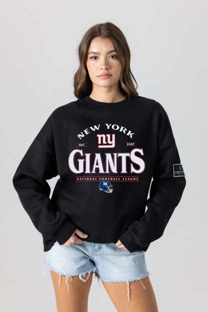 Get ready to cheer on your New York Giants with our black label premium fleece drop-shoulder crewneck with ribbed knit neckline, cuffs, and waistband. From the game to the everyday, this is your go-to choice.