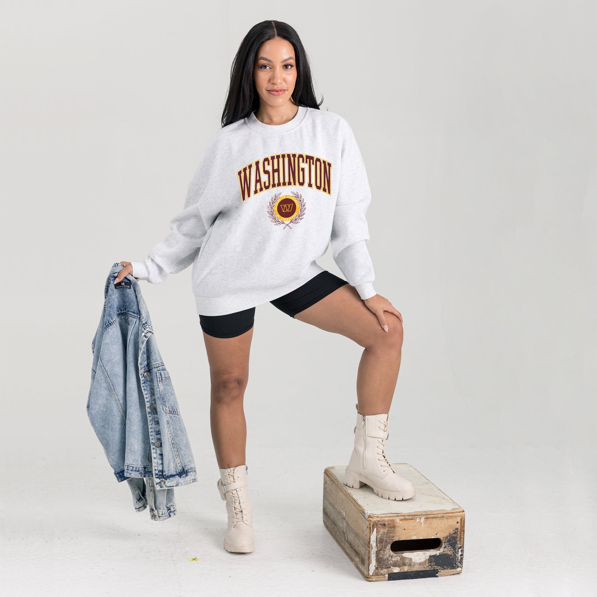 Stand out from the crowd in our Washington Commanders premium fleece long sleeve sweatshirt. Boasting an oversized fit, crewneck and ribbed knit neckline, wrists, and waistband, it effortlessly blends comfort with fashion. Show your support for your favorite school or team in this irresistibly soft sweatshirt.